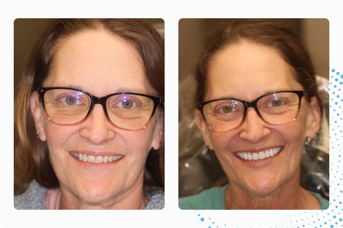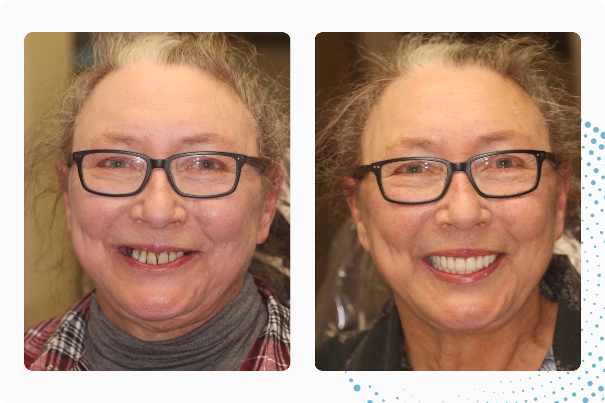 Pam’s teeth were worn, stained, and had tons of cavities. With Teeth in 24 we changed all of this in 1 day!